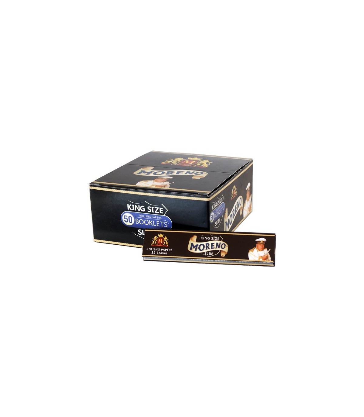 Τα χαρτάκια στιφτού MORENO Black KING SIZE SLIM είναι μεγάλα τσιγαρόχαρτα με εξαιρετικά λεπτό ρυζόχαρτο και αραβική κόλλα.