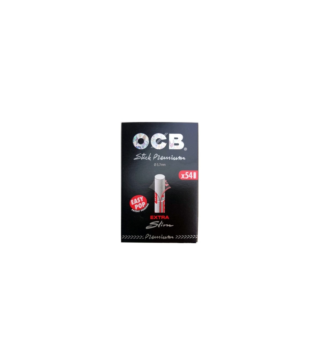 Τα φιλτράκια στριφτού OCB STICK PREMIUM 5.7mm EXTRA SLIM 54 EASY POP περιέχονται σε Pocket συσκευασία με μπάρες, οι οποίες διαθέτουν το επαναστατικό νέο σύστημα Easy Pop. Το Easy Pop έχει το πλεονέκτημα να ανοίγει το σελοφάν με εύκολο τρόπο για να αφαιρέσετε φιλτράκια και στη συνέχεια ξανακολλάει.