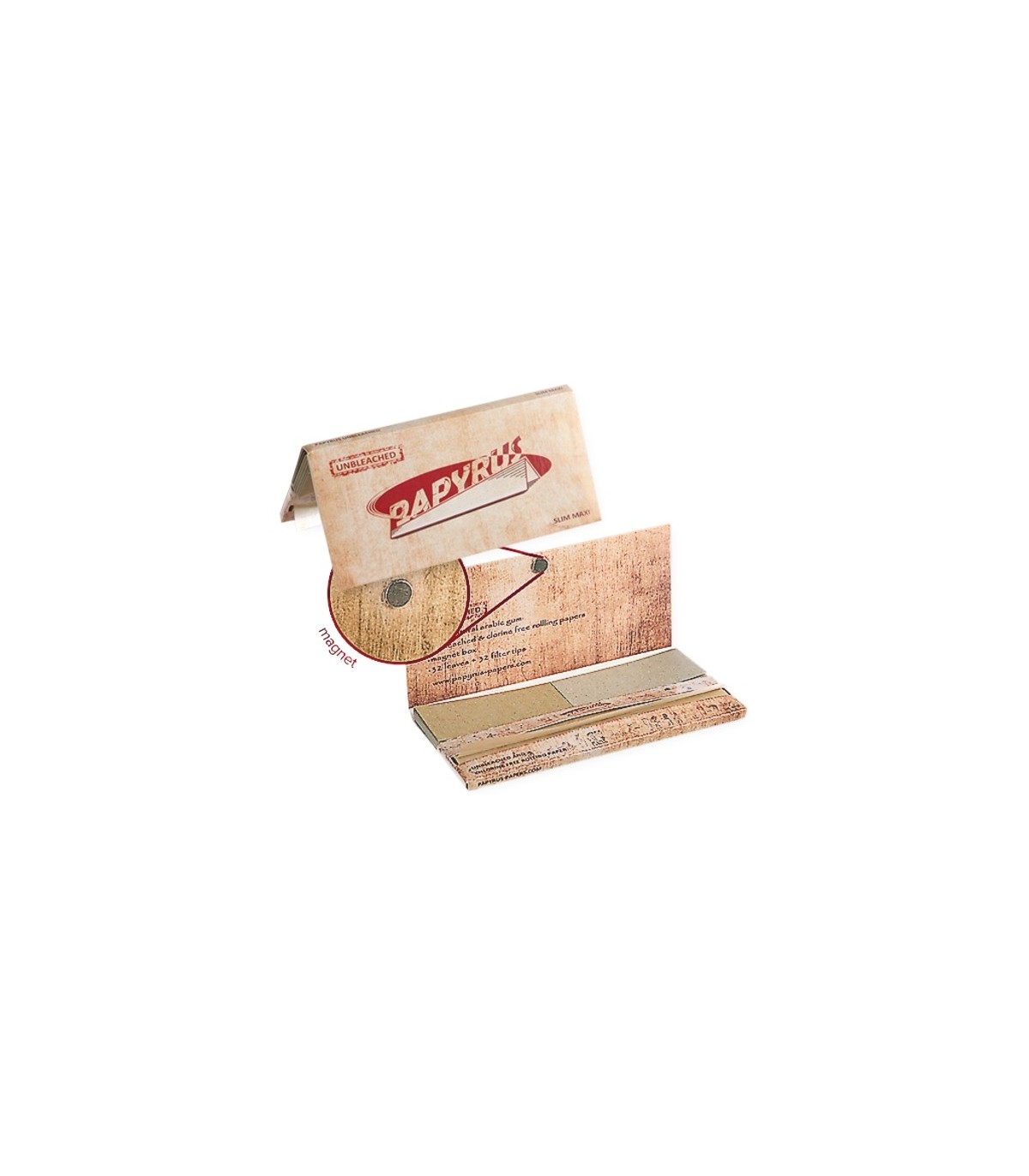 Τα χαρτάκια στριφτού King Size Slim Maxi pack Papers + Tips ακατέργαστα με μαγνήτη περιέχουν φύλλα και τζιβάνες. Κλείνουν αποτελεσματικά με μαγνήτη.