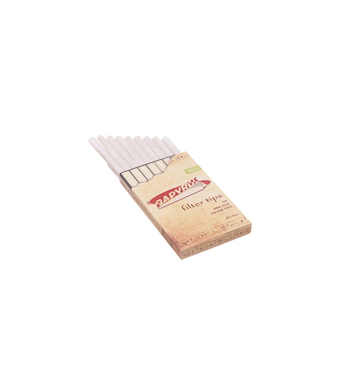 Τα φιλτράκια στριφτού PAPYRUS 5.7mm ECO 54 είναι λεπτά, προτεμαχισμένα βιοδιασπώμενα φίλτρα. Δεν περιέχουν χλώριο και έχουν σκούρο χρώμα.