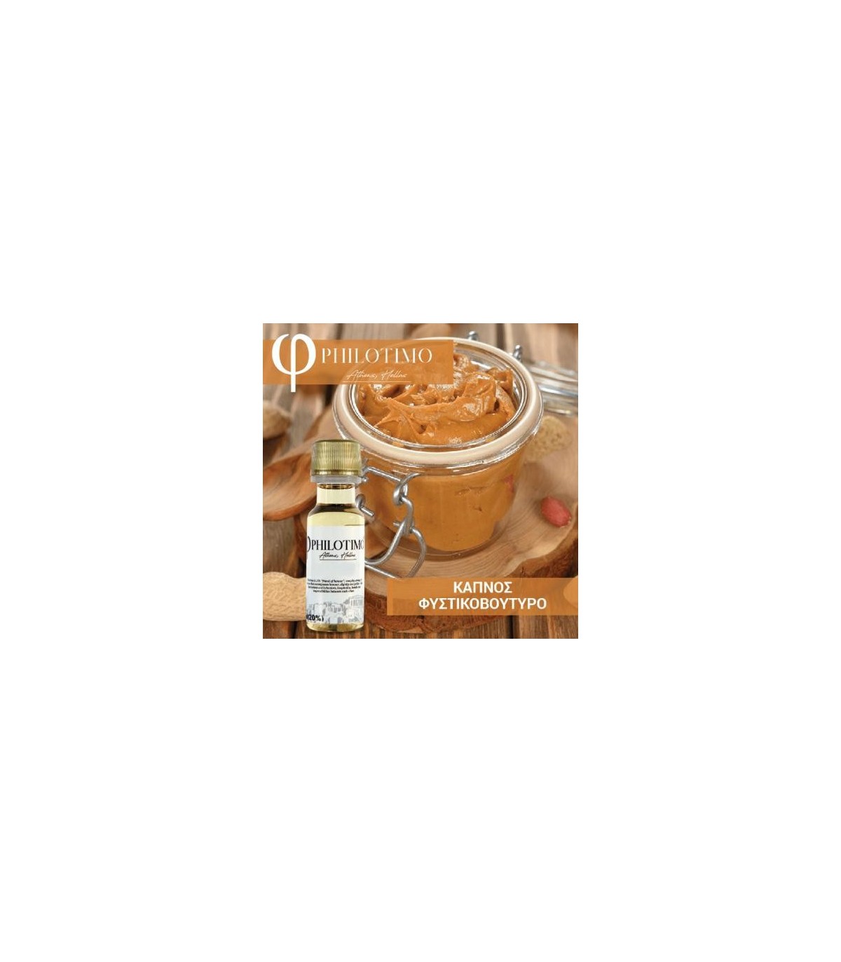 Το συμπυκνωμένο άρωμα Philotimo ΚΑΠΝΟΣ ΦΥΣΤΙΚΟΒΟΥΤΥΡΟ 20ml διαθέτει καπνική γεύση με φυστικοβούτυρο. Το άρωμά του θα το λατρέψετε καθώς τα αρώματα δένουν αρμονικά μεταξύ τους και το αποτέλεσμα είναι εκπληκτικό.
