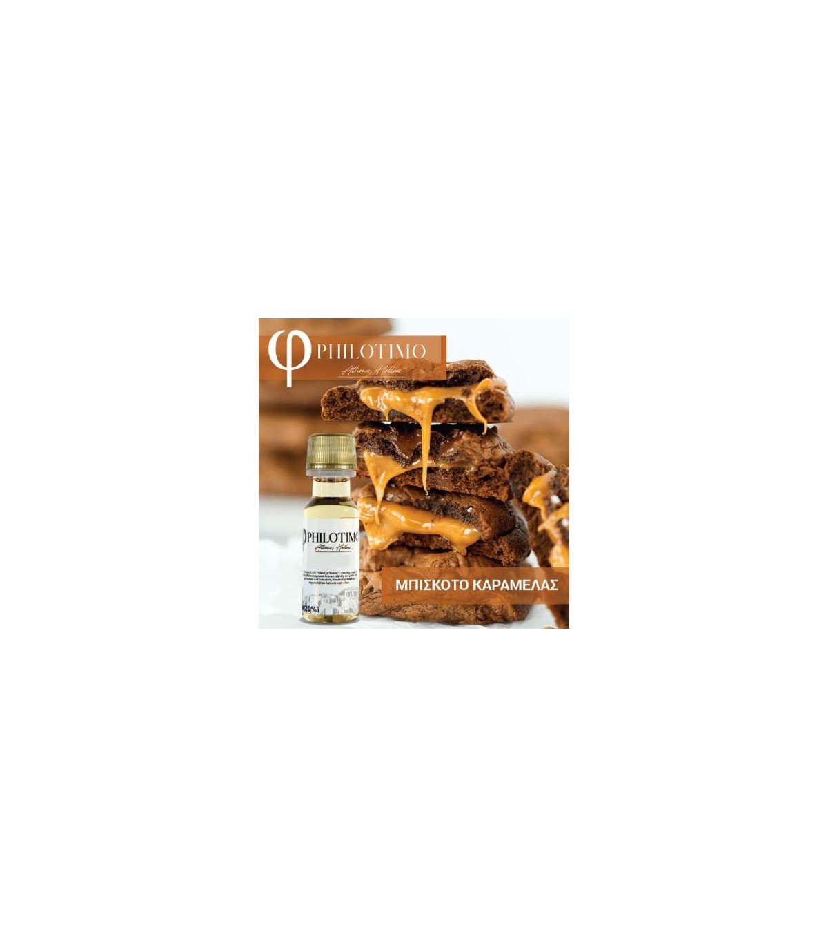 Το συμπυκνωμένο άρωμα Philotimo ΜΠΙΣΚΟΤΟ ΚΑΡΑΜΕΛΑ 20ml η ακαταμάχητη γεύση του μπισκότου και η λαχταριστή καραμέλα υπόσχονται να σας προσφέρουν μία πλούσια ατμιστική εμπειρία. Το αποτέλεσμα είναι θεϊκό και θα το λατρέψετε.