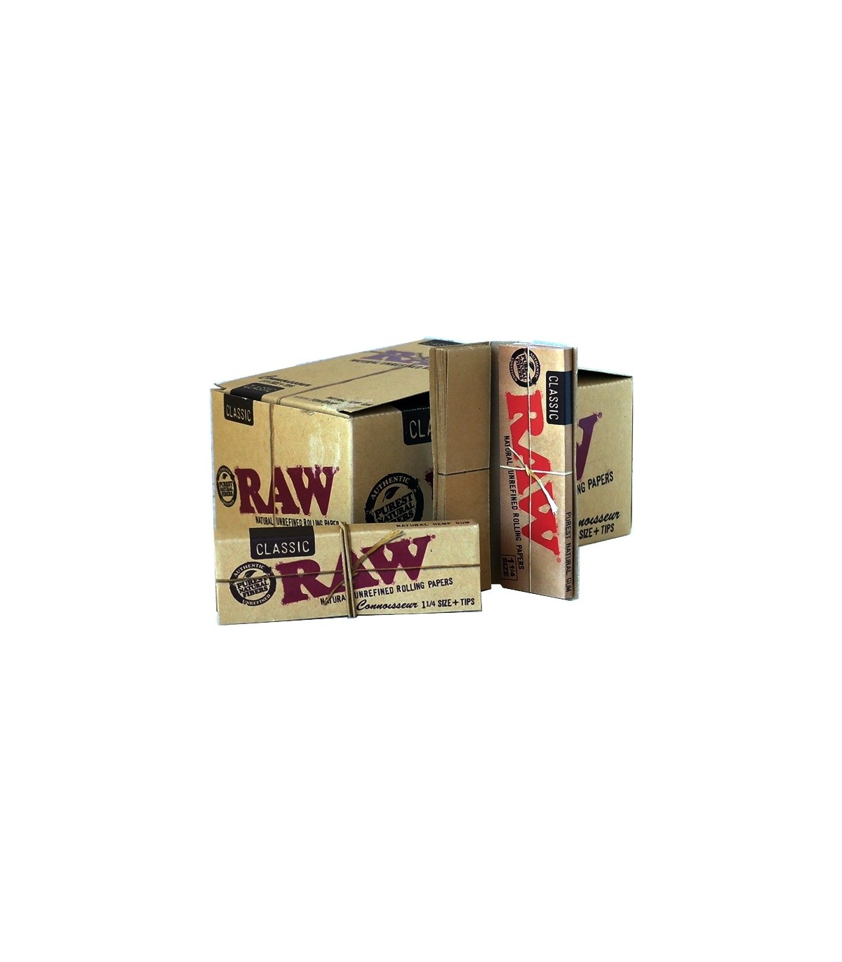 Κουτί με 24 χαρτάκια RAW Classic Ακατέργαστο Connoisseur 1 και 1 τέταρτο συν tips 32 φύλλα συν 32 τζιβάνες