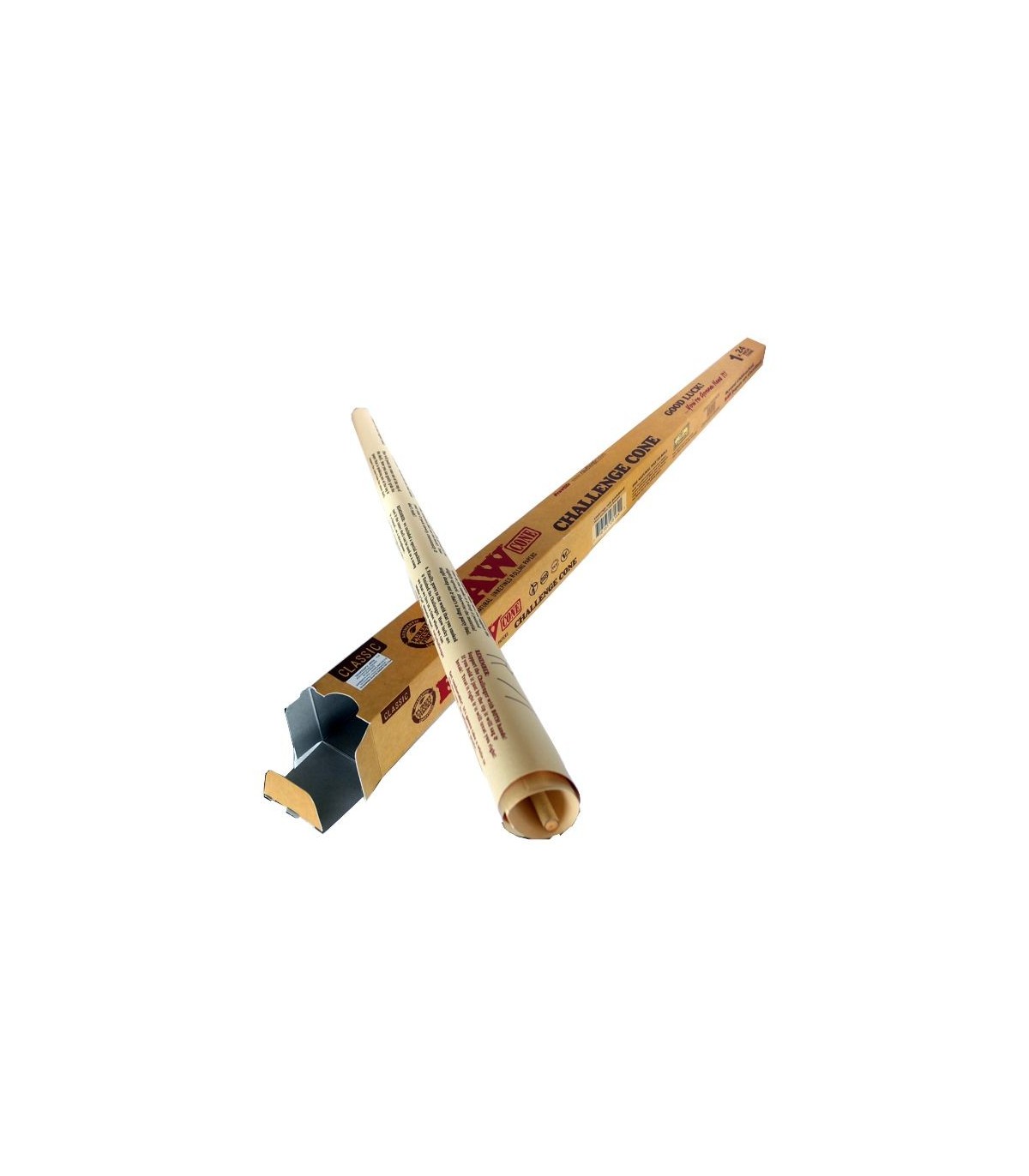 Ο κώνος RAW CHALLENGE CONE 24 INCH έχει πραγματικά τερατώδεις διαστάσεις με μήκος : 661mm. Το χαρτί του είναι το κλασικό ακατέργαστο classic unrefined και έχει χρώμα καφέ. Ο κώνος έχει κολλήσει με αργούς ρυθμούς με φυτική κόλλα βασισμένη στο νερό, γα αυτό και ο κώνος έχει συσκευαστεί 24 ώρες μετά. Ο κώνος είναι προτυλιγμένος με τζιβάνα στην μια άκρη.