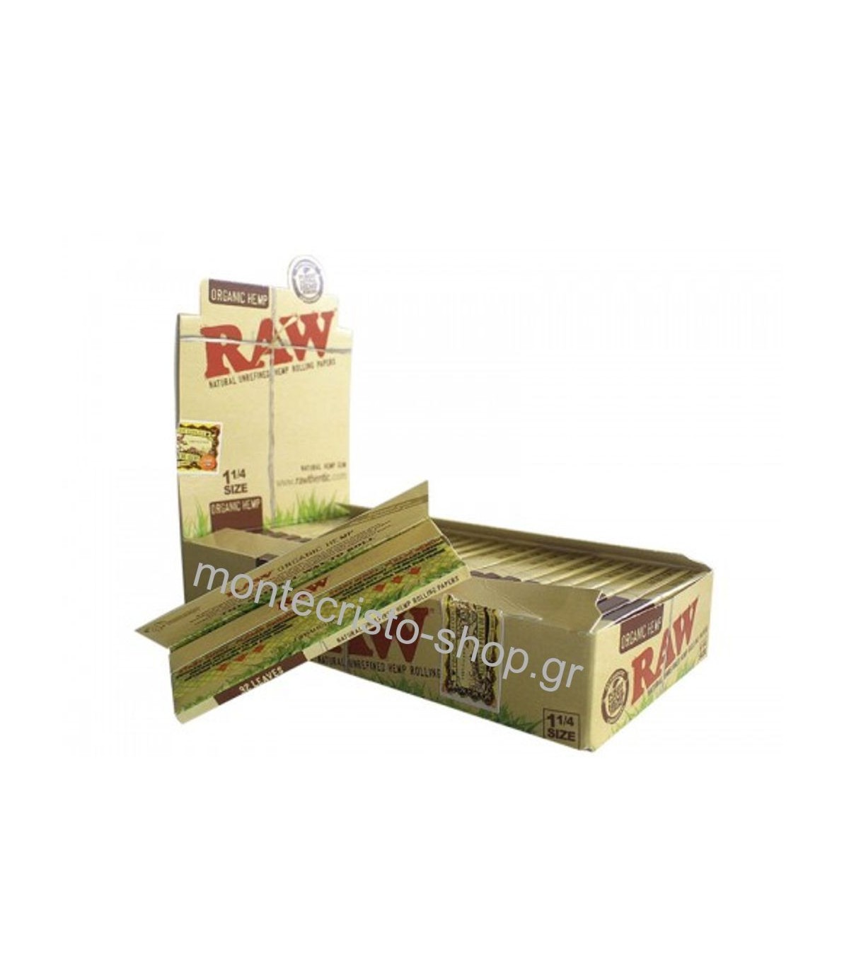 Χαρτάκια 1 ¼ SIZE RAW ORGANIC, Βιολογική κάναββη, Κουτί 24 τεμ, 50 φύλλα