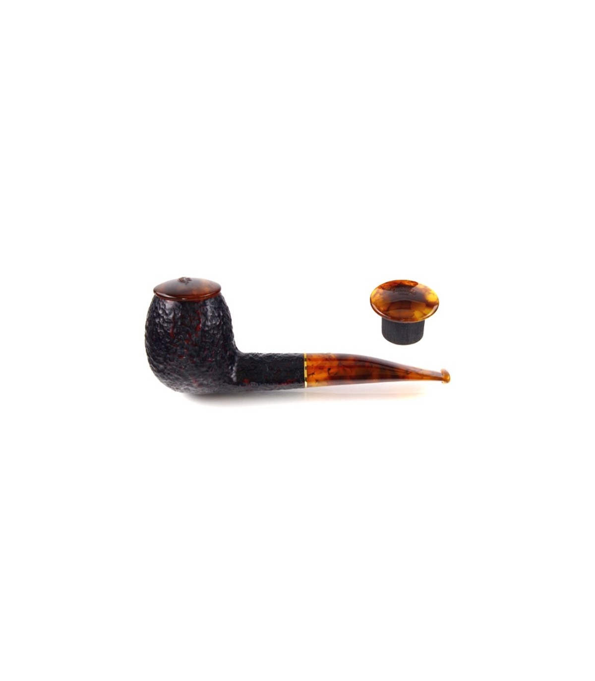 Η πίπα καπνού TORTUGA RUSTICATA MODEL 173 (Cod.P193Z***) 9mm έχει καφέ χρώμα με ημίκυρτο σχήμα, έχει κανονικό μέγεθος με χορταστικά μεγάλο μπολ και είναι κατασκευασμένη από ρείκι. Χαρακτηριστικά της είναι το επιστόμιο με σχέδιο από κέλυφος χελώνας και το καπάκι για μπολ για να μην πέφτουν οι στάχτες. Συμβατή με φίλτρο 9mm.
