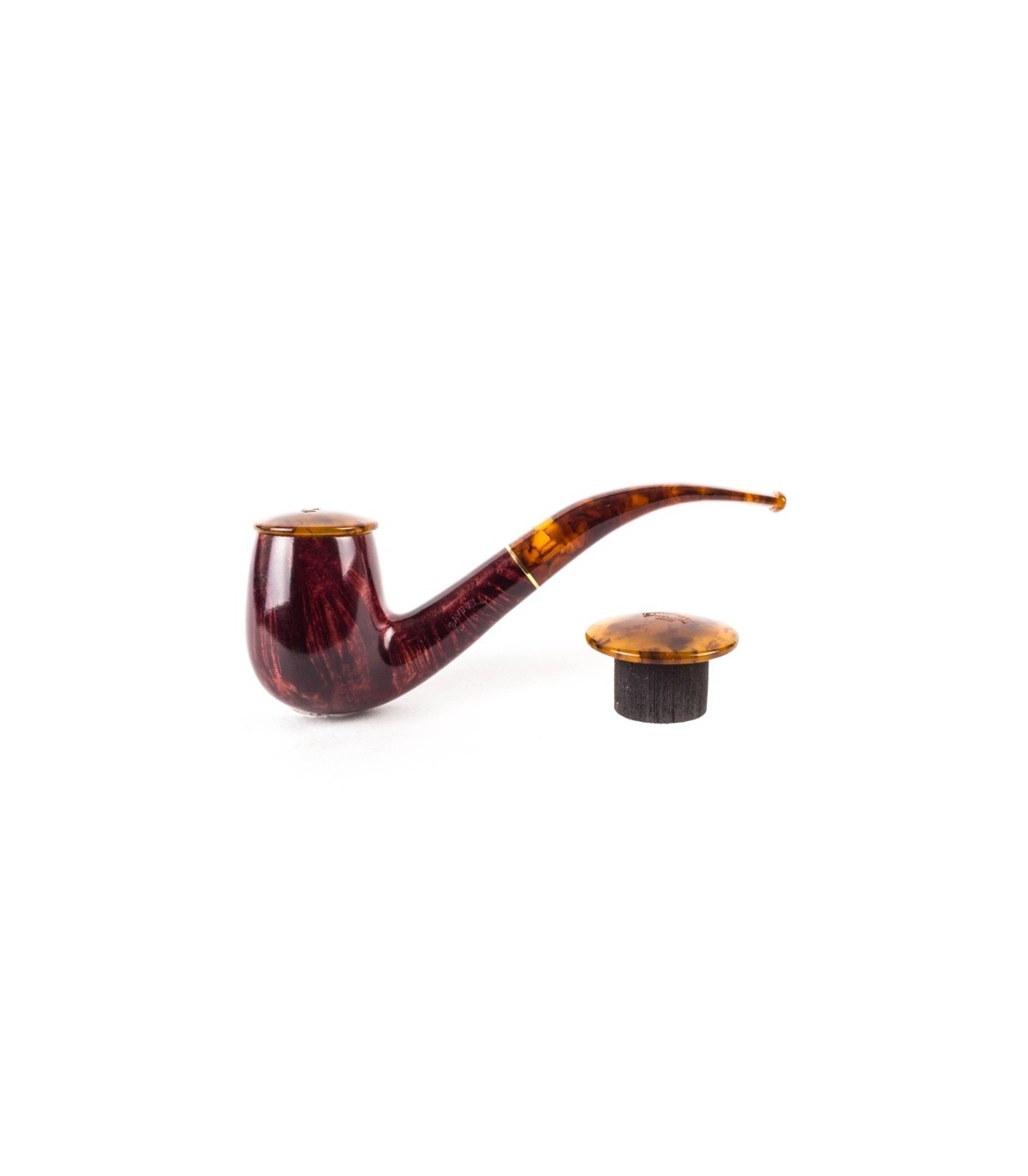 Η πίπα καπνού SAVINELLI TORTUGA 606 SMOOTH KS 9mm P193L*K9 είναι βολική στο κρατάει τις ανεπιθύμητες στάχτες μέσα στο μπωλ, όταν δεν την χρησιμοποιείτε. Αυτό το καταφέρνει με το πυρίμαχο καπάκι που διαθέτει, το οποίο όταν το τοποθετείτε στον θάλαμο εγκλωβίζει αποτελεσματικά το περιεχόμενο της πίπας. Έχει καφέ-μπορντό χρώμα με κυρτό σχήμα, μεγάλο μέγεθος και είναι κατασκευασμένη από ρείκι. Χαρακτηριστικά της είναι το επιστόμιο με σχέδιο και αποχρώσεις από κέλυφος χελώνας και βέβαια το καπάκι για μπολ για να μην πέφτουν οι στάχτες. Συμβατή με φίλτρο 9mm.