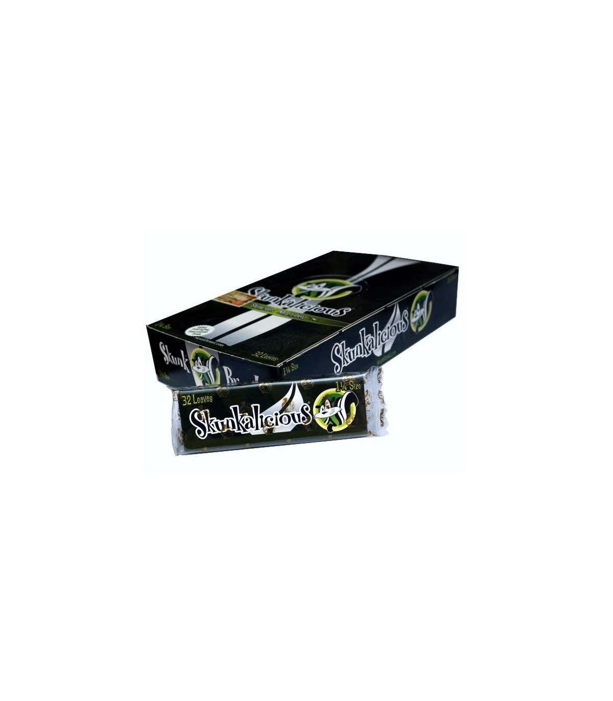 Κουτί με 24 αρωματικά χαρτάκια στριφτού Skunk Brand Skunkalicious 1& 1/4. Τα αρωματικά χαρτάκια στριφτού Skunk Brand Skunkalicious περιέχουν 32 πανέμορφα φύλλα σε χαρούμενα σχέδια και χρώματα. Οι διαστάσεις τους είναι 78mm X 44mm, ιδανικές για ένα χορταστικό στριφτό τσιγάρο.