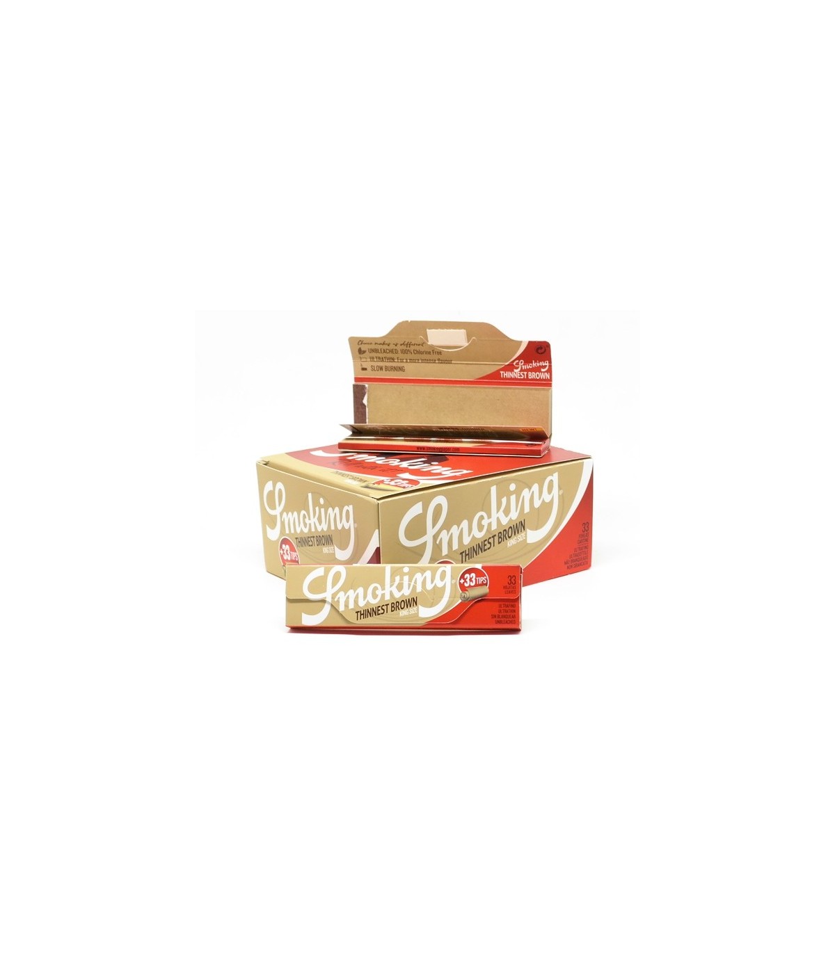Τα χαρτάκια στριφτού Smoking Thinnest BROWN King Size + 33 tips είναι μεγάλα σε μέγεθος και στην συσκευασία τους περιέχουν 33 BROWN τζιβάνες. Τα τσιγαρόχαρτα Smoking Thinest BROWN είναι ίσως τα λεπτότερα χαρτάκια στον κόσμο.