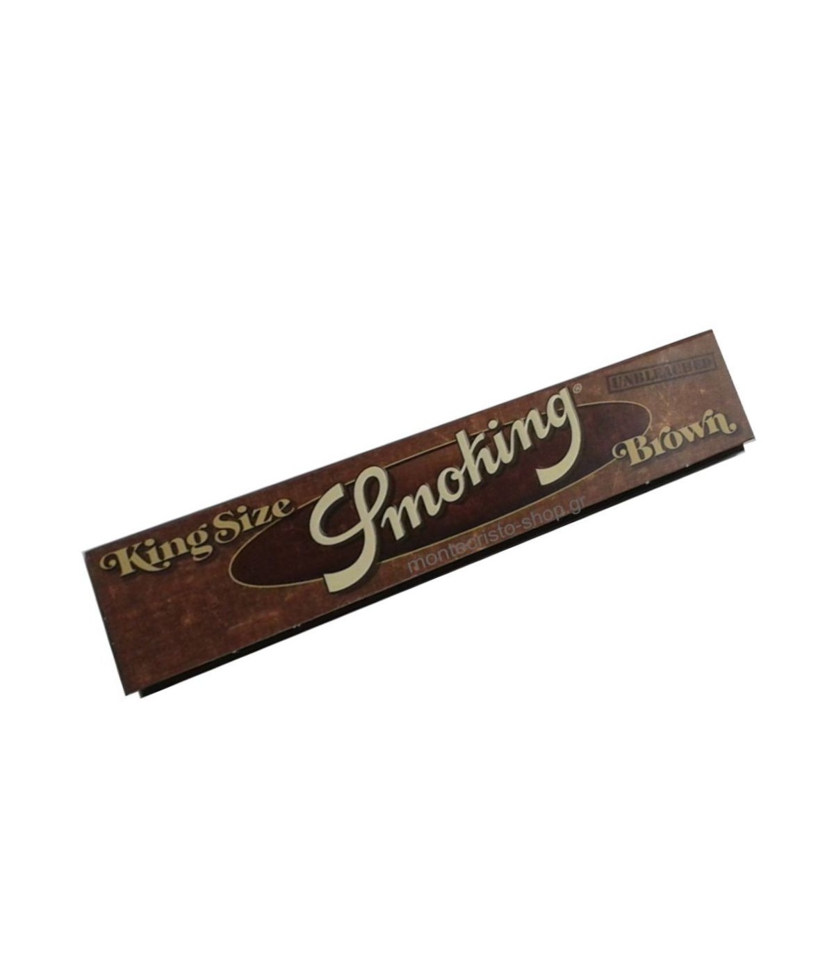 Τα χαρτάκια στριφτού Smoking Brown unbleched διαθέτουν 33 φύλλα σε χρώμα καφέ και είναι εντελώς ακατέργαστα χωρίς προσμίξεις με χημικές ουσίες. Η κόλλα τους είναι φυτική και το μέγεθος τους 110 χ 37mm. Το πάχος τους είναι λεπτό για βραδύκαυστο τσιγάρο και είναι ιδανικό για τους λάτρες του ακατέργαστου στριφτού τσιγάρου σε μεγάλο μεγάλο μέγεθος.