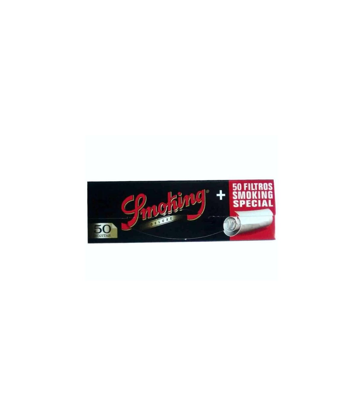 Τα χαρτάκια Smoking De Luxe μεσαία με 50 φύλλα και 50 τζιβανόχαρτα προορίζονται σε καπνιστές που θέλουν με εύκολο και ποιοτικό τρόπο να καπνίζουν το μεσαίο σε μέγεθος τσιγαρόχαρτο και την τζιβάνα που είναι πάντα σε βολική θέση.