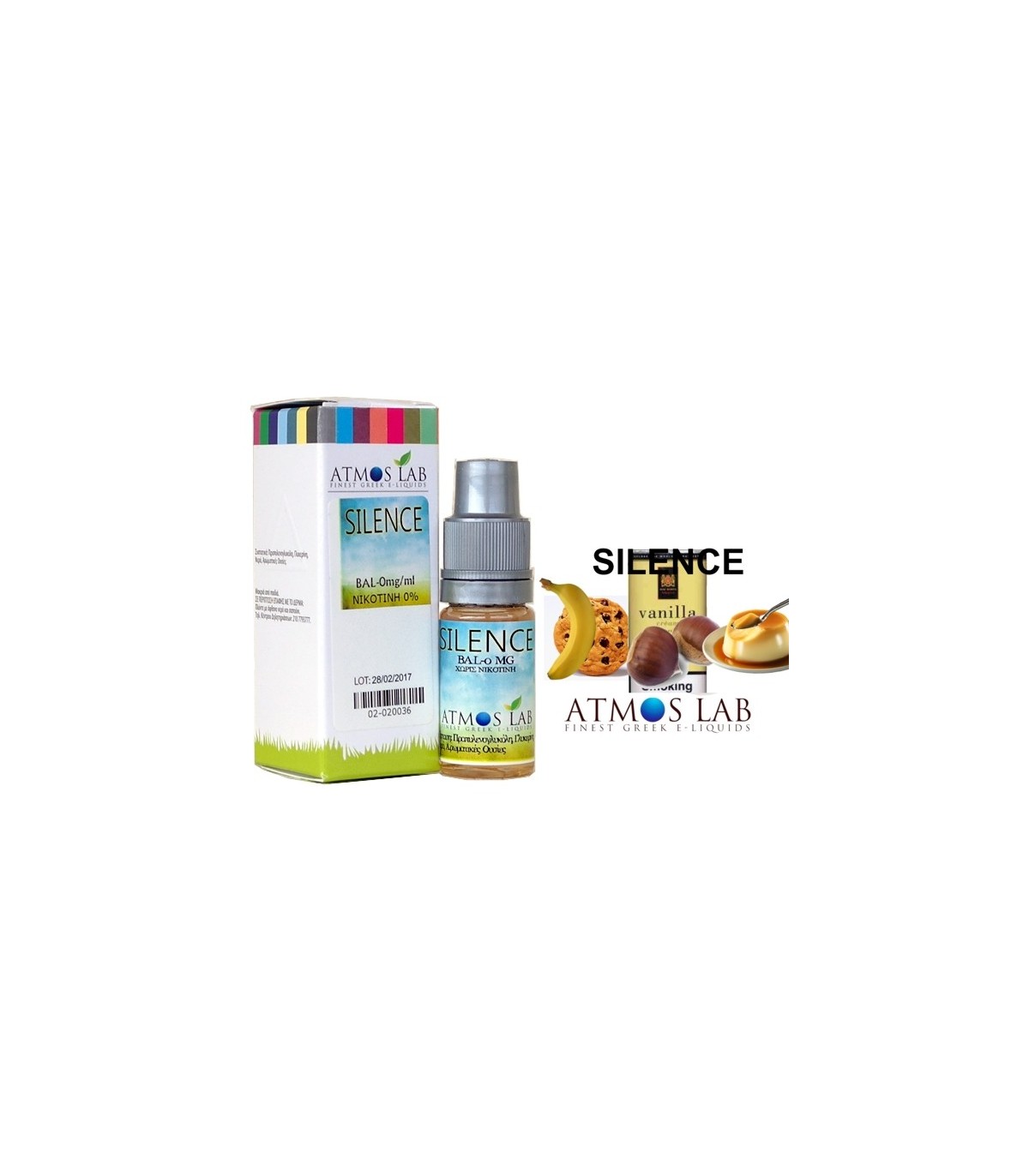 Το υγρό αναπλήρωσης Atmos Lab SILENCE NATURE 10ml (βανίλια, κρέμα, καραμέλα, μπανάνα, κάστανο, μπισκότο) απευθύνεται σε όλους τους λάτρες γλυκών και φρούτων.Eίναι εναρμονισμένο με τις τελευταίες οδηγίες TPD.