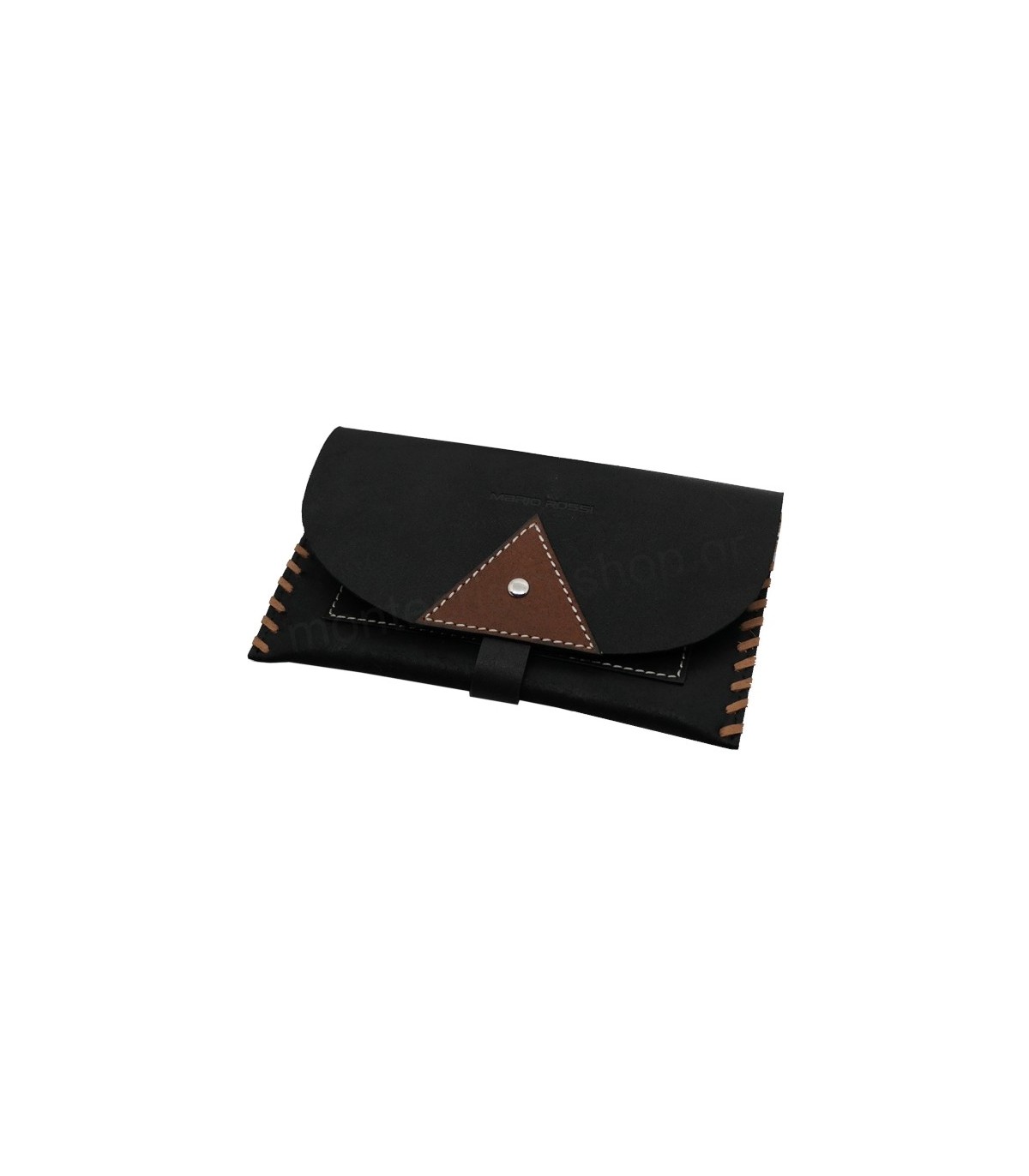 Η καπνοθήκη MARIO ROSSI 290096 BK TAN είναι δερμάτινη με χρώμα μαύρο και απευθύνεται σε χρήστες προτιμούν να τοποθετούν το σακουλάκι του καπνού μέσα στην καπνοθήκη τους.
