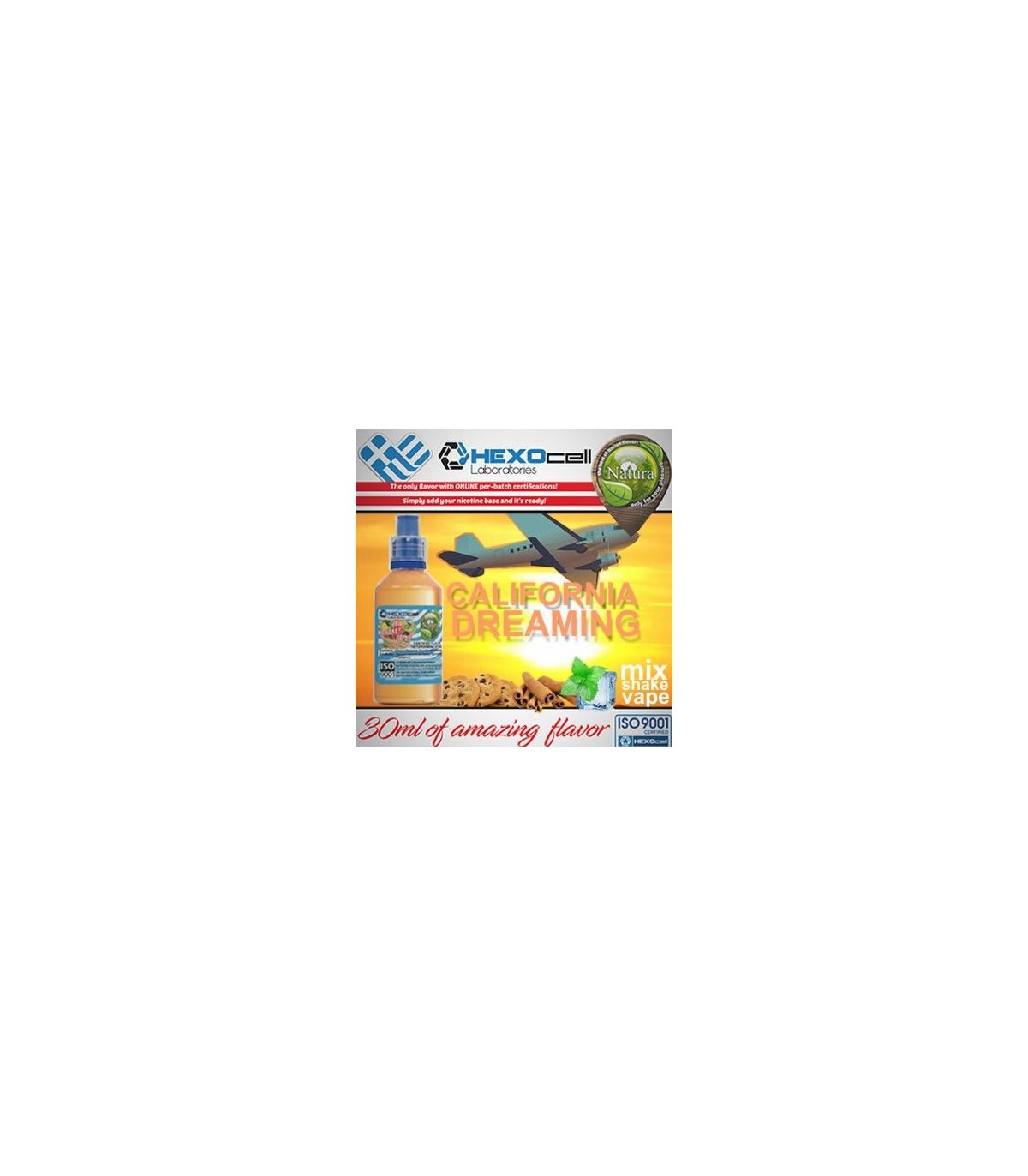 Το υγρό αναπλήρωσης NATURA MIX SHAKE VAPE CALIFORNIA DREAMING 30/60ML είναι μία πανδαισία γεύσεων και αρωμάτων με ξεκούραστη επίγευση μπισκότο κανέλα και μέντα για ακατάπαυστο άτμισμα.