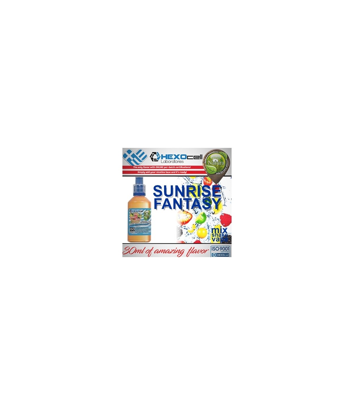 Το υγρό αναπλήρωσης NATURA MIX SHAKE VAPE SUNRISE FANTASY 30/60ML είναι απόλυτα φρουτένιο και περιέχει φρέσκα καλοκαιρινά αρώματα από εσπεριδοειδή μπανάνα βατόμουρο μέντα και τσιχλόφουσκα.