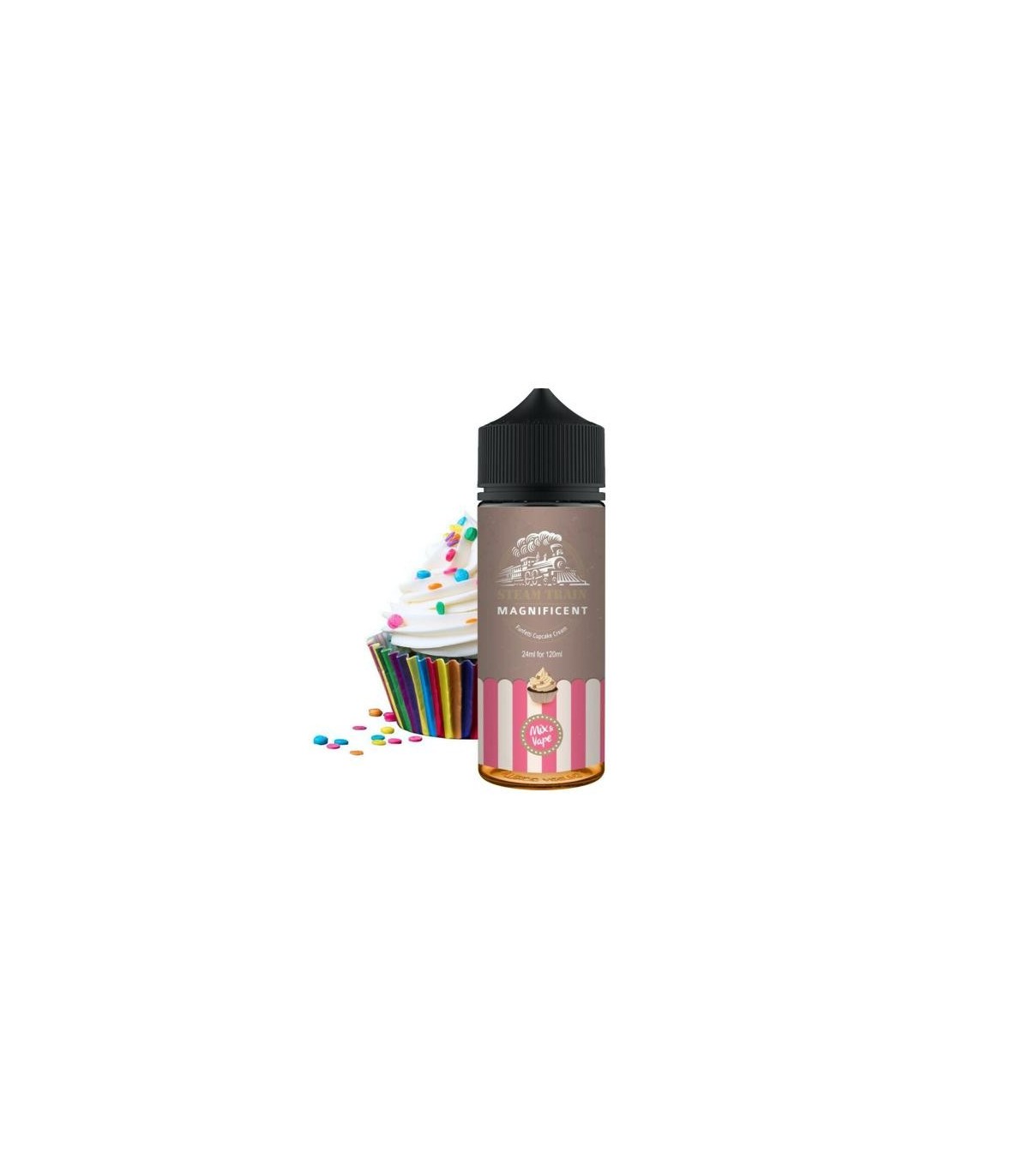 Το Shake and Vape STEAMTRAIN Flavour Shot MAGNIFICENT 24ml θα σας γλυκάνει με την φανταστική γεύση που διαθέτει από αφράτο κρεμώδης cupcake πασπαλισμένο με σοκολατένια κουφετάκια. Η μίξη που πρέπει να πραγματοποιήσετε είναι υποχρεωτικά μέχρι τα 120ml
